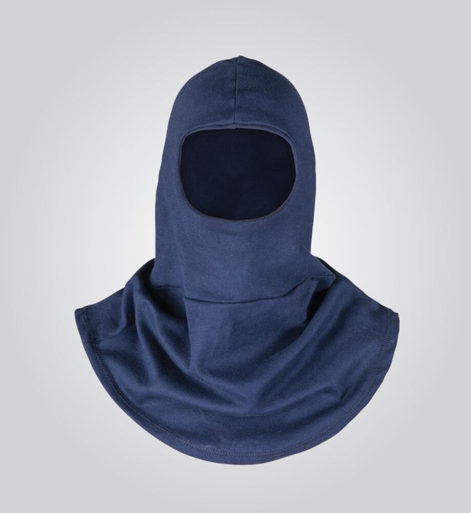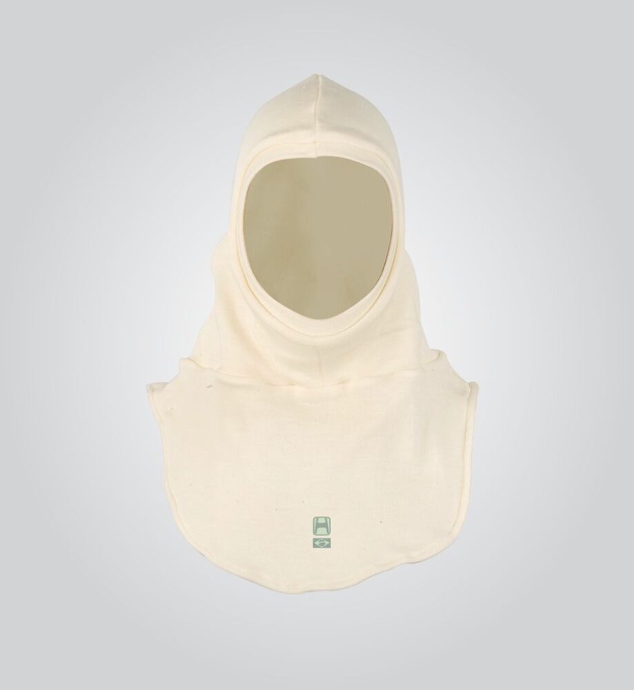 Capuz balaclava com resistência contra arco elétrico confeccionado em malha em 95% algodão e 5% lycra. Tecido resistente a chamas. Duas camadas na parte superior facial e uma camada na parte inferior.