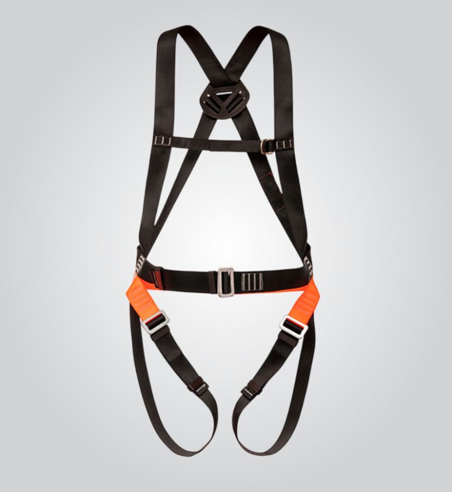 Cinturão paraquedista confeccionado em fita de poliéster. Tem 01 meia-argola como ponto de conexão dorsal. Conta com 03 fivelas duplas de ajuste, nas coxas e na cintura. Possui ajuste peitoral na fita secundária. Utilizado em atividades a mais de 2 metros de altura do piso, nas quais haja risco de queda do trabalhador.
