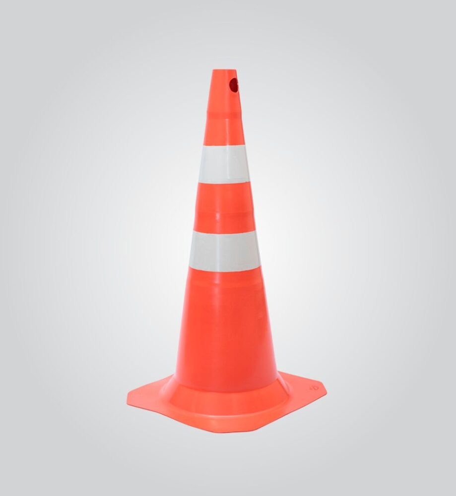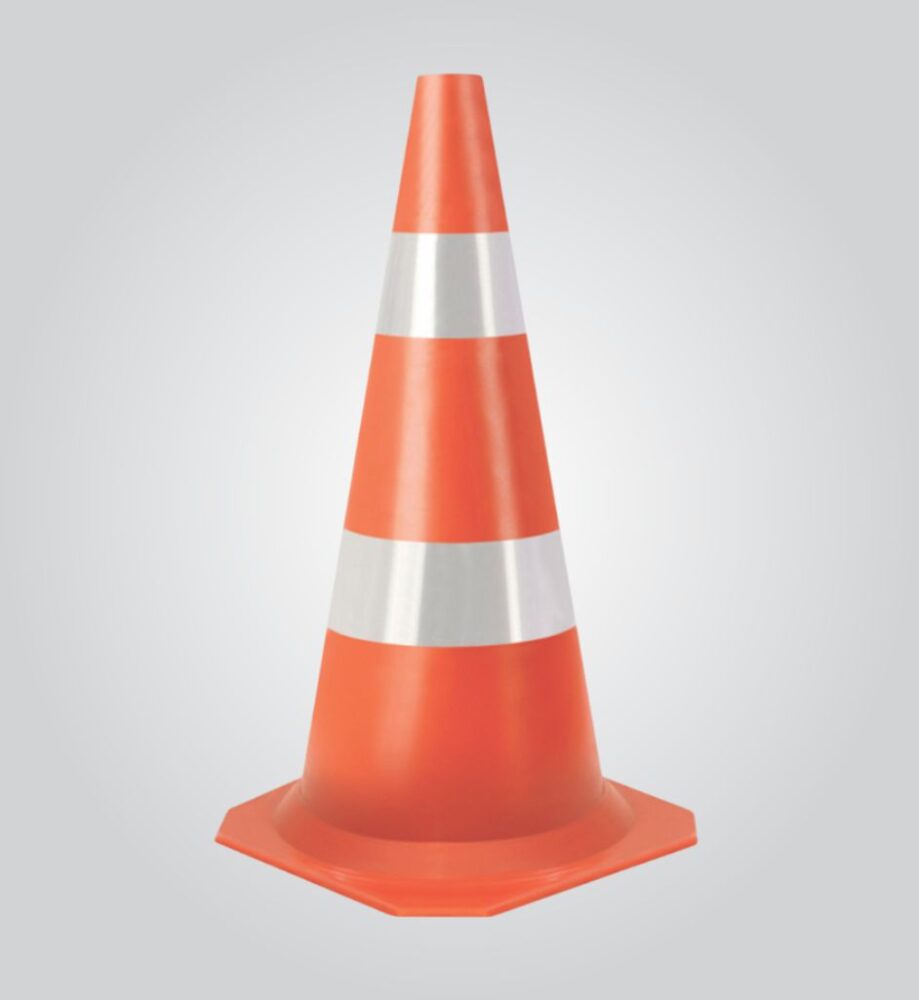 Cone para sinalização e segurança injetado em PVC nas cores laranja ou preto. Possui duas faixas refletivas nas cores branca ou amarela, soldadas eletronicamente no cone. As faixas são confeccionadas em PVC prismático, e pode ser vendido com ou sem o mesmo.