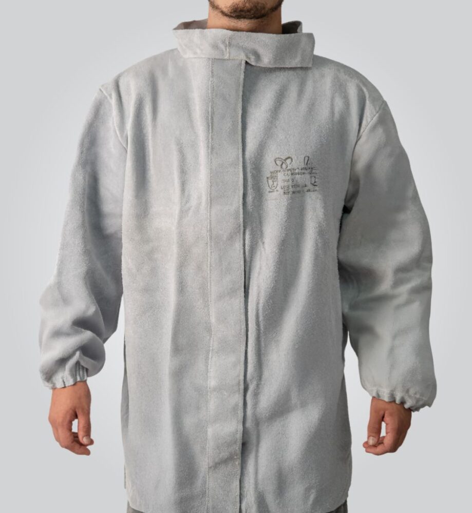 Blusão de segurança confeccionado em vaqueta, fechamento em velcro. Indicado para proteção do tronco e membros superiores do usuário contra agentes abrasivos, escoriantes e térmicos provenientes de operações de soldagem e processos similares