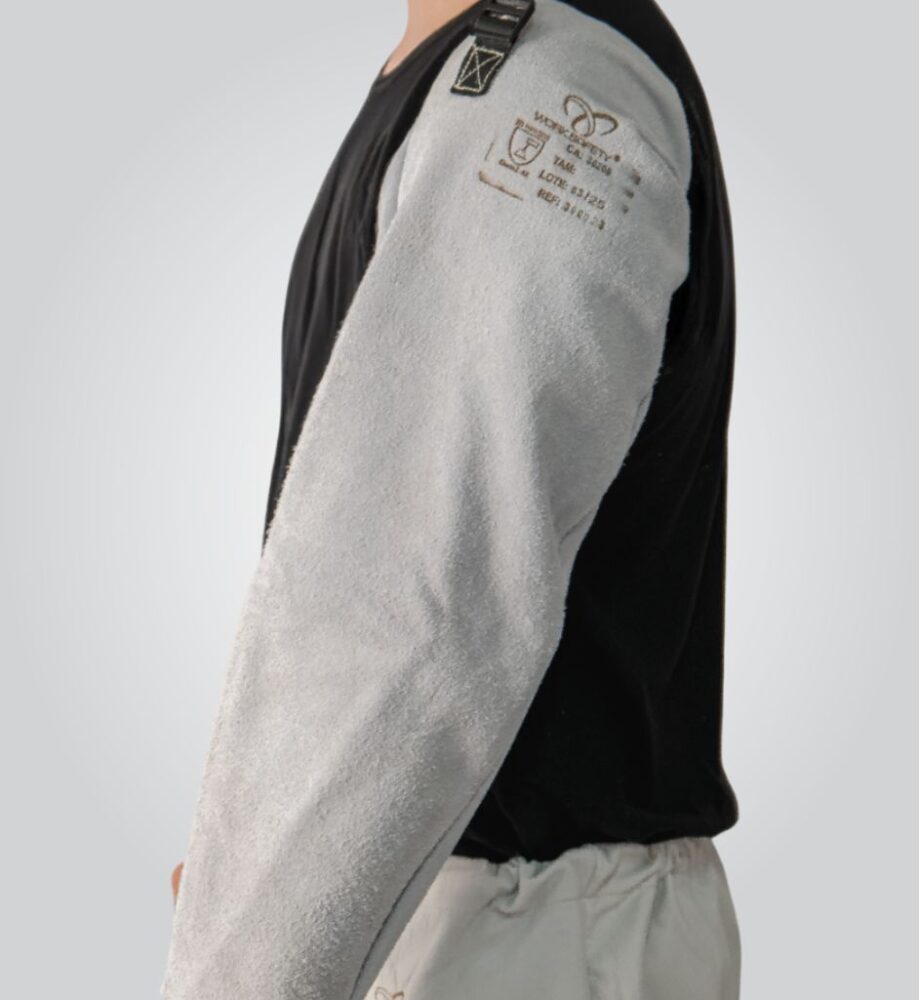 Manga de segurança confeccionada em raspa. Indicada para proteção do braço e antebraço do usuário contra agentes abrasivos, escoriantes, cortantes e perfurantes e contra agentes térmicos provenientes de operações de soldagem e processos similares.